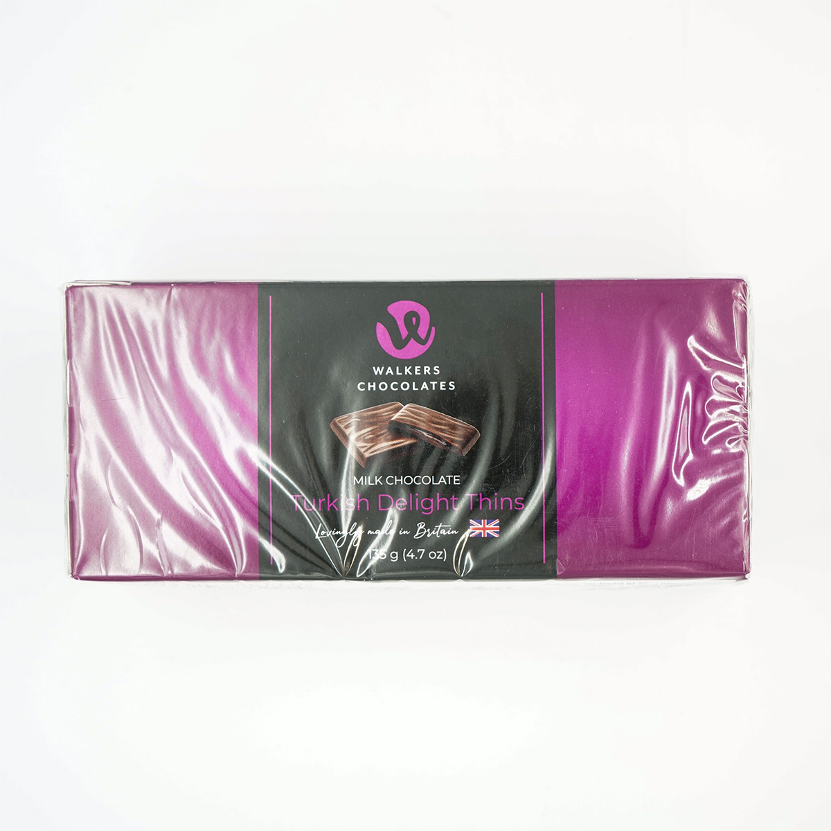 Walkers Chocolate Turkish Delight Thins 135g combine fragrant, rose-infused Turkish Delight with a thin layer of smooth milk chocolate. Elegant and indulgent, these delicate thins offer a perfect balance of floral sweetness and creamy richness, ideal for gifting or enjoying after dinner.