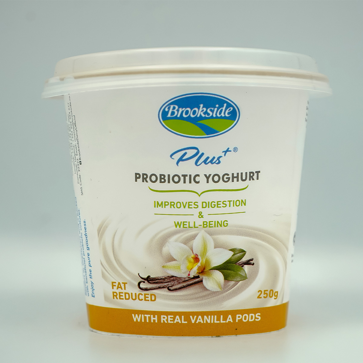 Brookside Probiotic Vanilla is a creamy, smooth yogurt enriched with probiotics to help support digestive health. Infused with a rich, natural vanilla flavor, this yogurt provides a deliciously indulgent yet healthy treat. It’s packed with probiotics, calcium, and vitamins, making it a great snack or part of a wholesome breakfast. Ingredients: Fresh milk, vanilla flavor, probiotic cultures, sugar, stabilizers. Allergens: Contains milk. Enjoy the creamy goodness and health benefits of Brookside Probiotic Vanilla Yogurt for a tasty, gut-friendly treat!