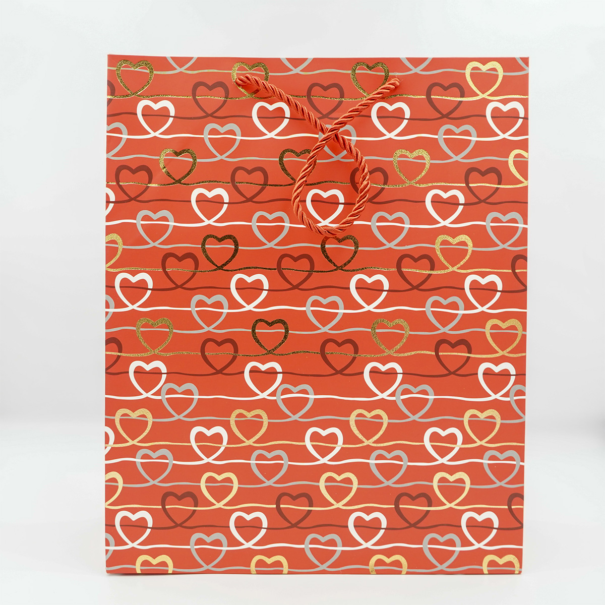 Sweet, compact, and dressed in classic red hearts, this little gift bag is made for thoughtful surprises. Perfect for small treasures, treats, or tokens of affection, it adds charm before the gift is even revealed. Small in size, big on presentation.