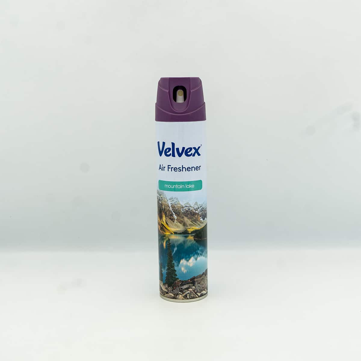 Velvex Air Freshener Mountain Lake is a 300ml spray that brings the crisp, clean scent of a mountain lake into your home or office. This air freshener effectively eliminates odors, leaving your space smelling fresh and inviting. Its long-lasting fragrance ensures a pleasant atmosphere throughout the day.