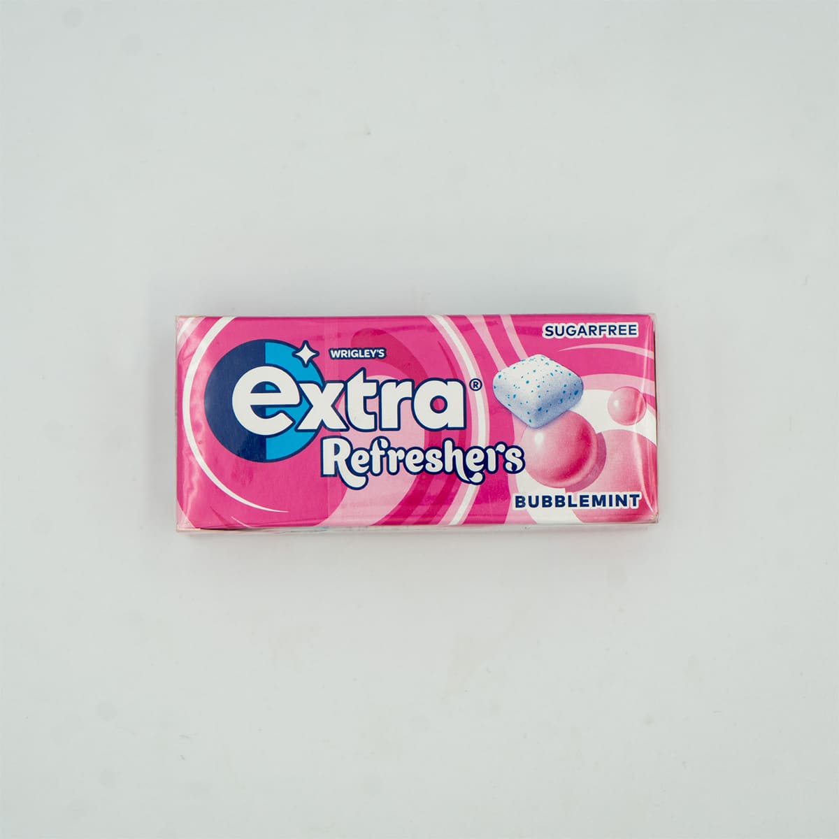 Extra Refreshers Bubblemint gum combines the classic taste of bubblegum with a refreshing minty twist. Each chew delivers a burst of long-lasting flavor to keep your breath fresh. Soft and chewy, it’s perfect for a quick pick-me-up anytime.