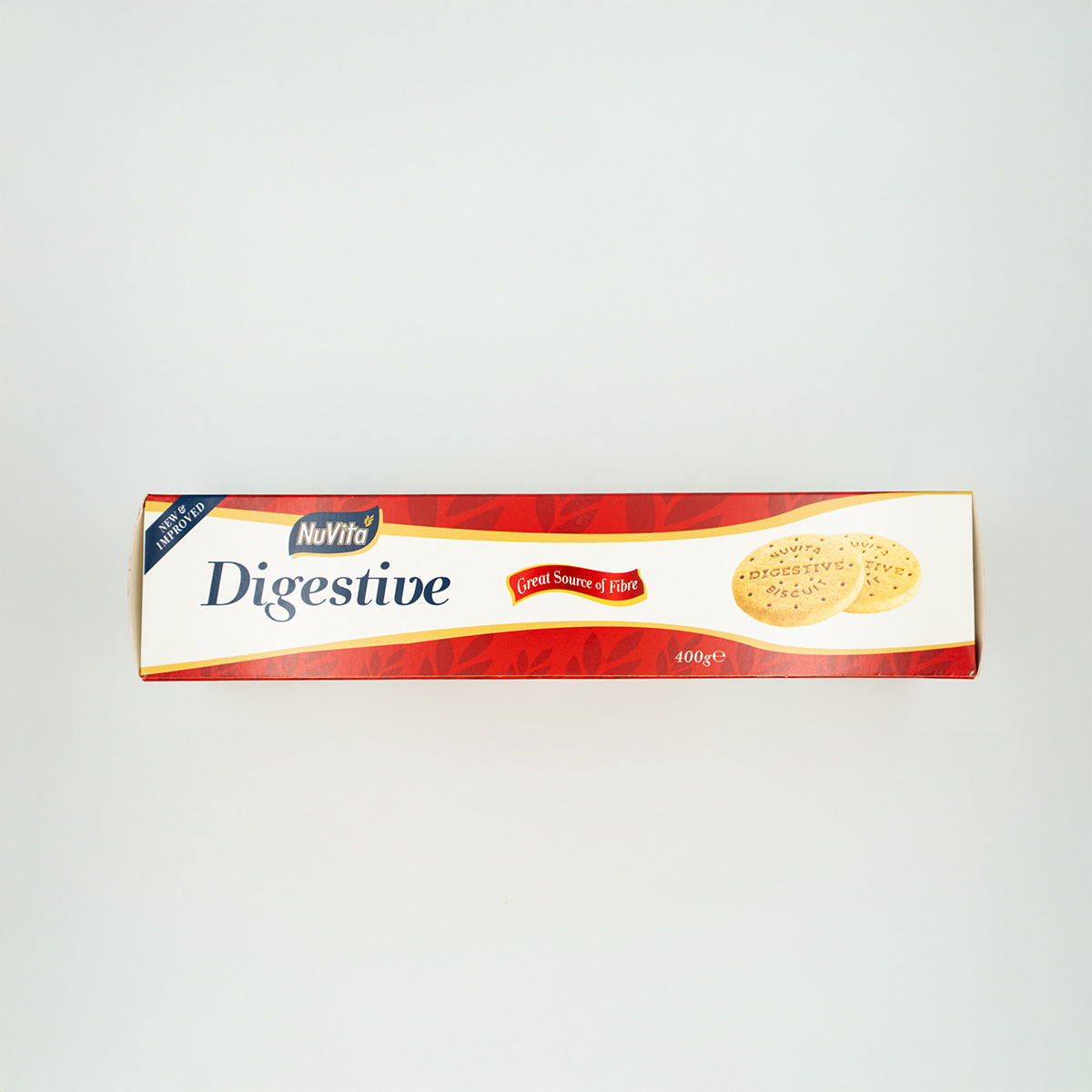 Nuvita Digestive 400g biscuits offer double the goodness in a generous pack, perfect for sharing or stocking up. Rich in fiber and made with wholesome wheat flour, they deliver a mildly sweet, nutty flavor with a satisfying crunch. Ideal for tea time or mindful snacking, these classic digestives support healthy digestion while keeping your cravings deliciously in check.