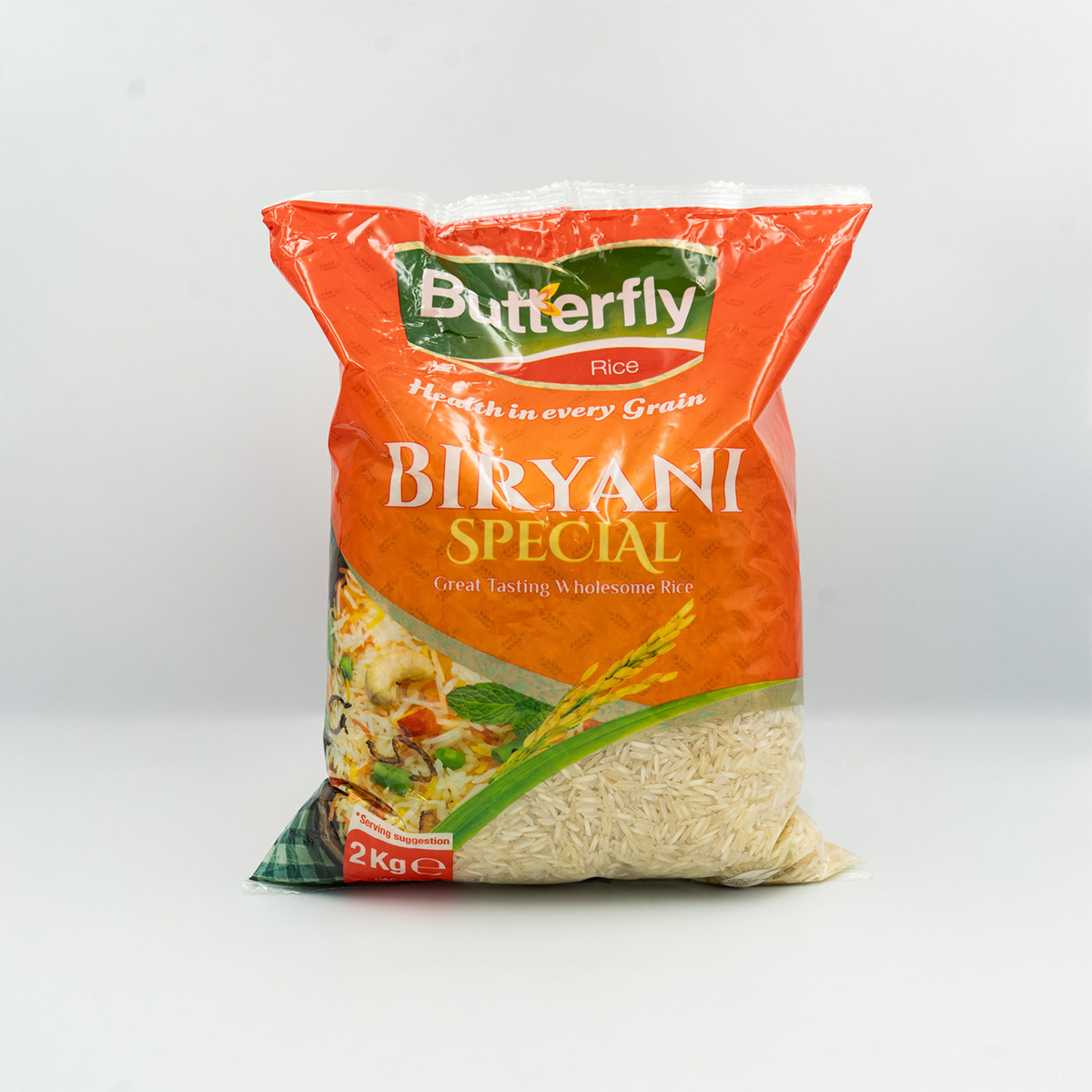 Biryani Special Rice is a meticulously selected and specially crafted rice variety designed to elevate the art of biryani-making to perfection. This unique rice variety is characterized by its long, slender grains and the ability to absorb aromatic spices, allowing you to create biryanis bursting with flavour and fragrance. Sourced from the finest fields, our Butterfly Biryani Special Rice ensures an unparalleled biryani experience with every grain.